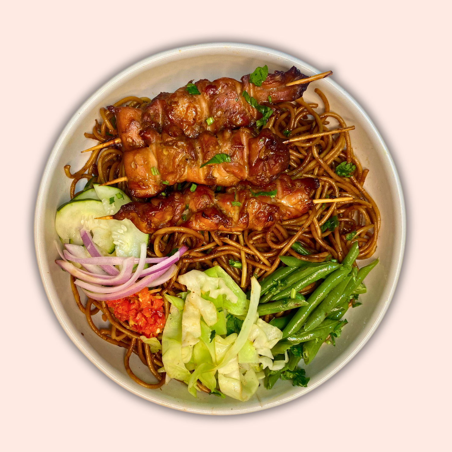 Noodles with authenthic spices served with chicken of choice, vegetables and pickles.